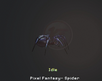 Spider character for a fantasy pixel art-style game. Sprites have a resolution of 256x256. You can use this character in many genres like survival/RPG/Platformer. There is a zip file which includes all the sprite sheets in PNG file format